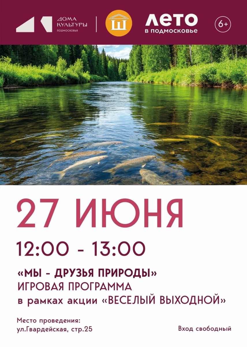 ✨ 🌳 Шаховский СДК приглашает на "Весёлый выходной"! Игровая программа "Мы - друзья природы" ждёт всех желающих! ☔ При неблагоприятных погодных условиях программа может быть проведена в помещении 🙆♀️ 🚫 Возраст: 6+ 📆 27.06.2025 🏢 Шаховский сельский дом культуры (СДК) 📍 г.о.Домодедово, с.Красный Путь, ул.Гвардейская, д.21 💰 Вход свободный❗️ ✅ Мероприятия Домодедово https://dzen.ru/id/66f10385cc4c5a16f7b5fb02 http://vk.com/domodedovo_events http://dzen.ru/domodedovo_events