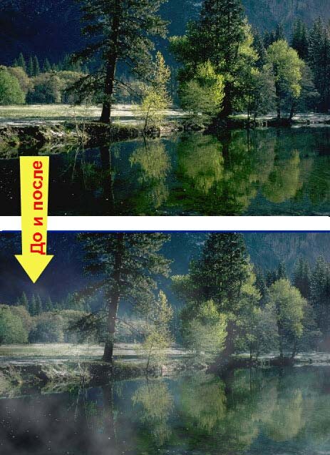 Сравните пейзаж до, и после обработки фотографии в фотошопе.