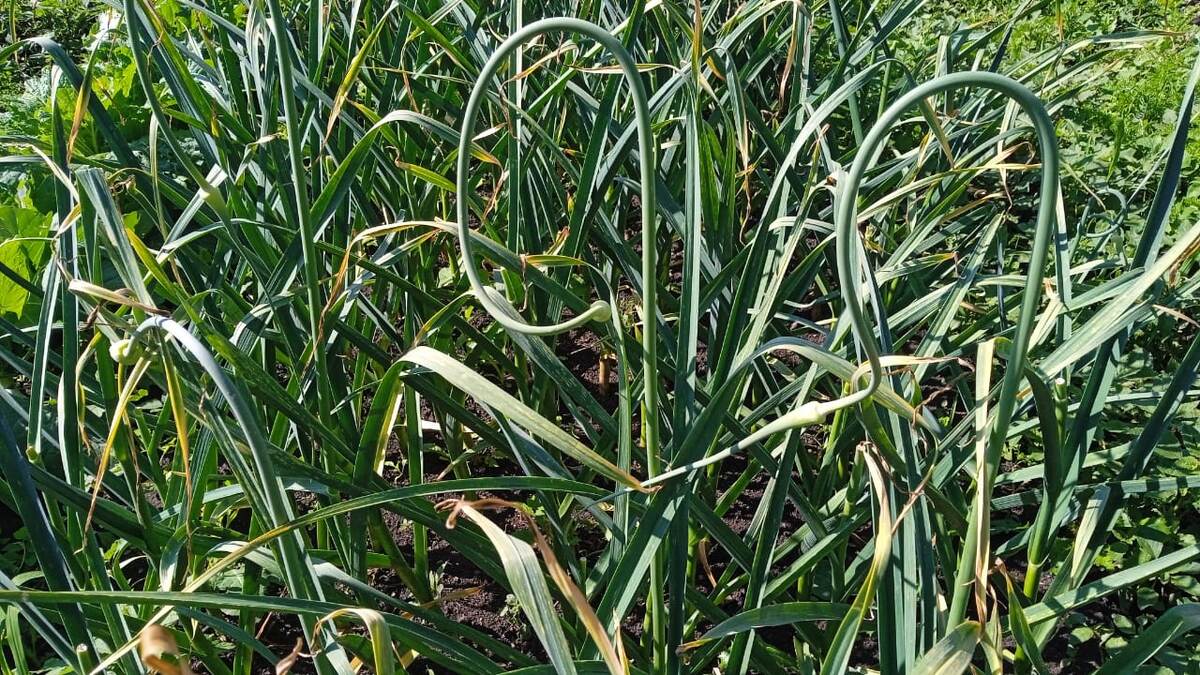 Здравствуйте, дорогие подписчики и гости моего канала, сегодня расскажу вам о том, что я делаю с чесноком в июне. Когда чеснок выпустит цветочные стрелки, и они завернутся кольцом, в это время начинают формироваться головки(луковицы), и вот чтобы получить качественный, крупный и с хорошей лежкостью чеснок провожу очередной уход и третью последнюю подкормку. Напомню, первая подкормка была азотная, когда появятся 3-4 листа, у меня это нашатырный спирт (40мл на 10л воды). Вторая через две три недели после первой, когда появятся 7-8 листиков. Также азотная, но уже с добавлением микроэлементов. Я использовала специальное удобрение "для лука и чеснока". В нем содержится всё что необходимо для растений. О третьей подкормки расскажу более подробно. Для формирования качественных, крупных, сочных головок чеснока требуется фосфор и калий, для этого можно взять 1ст золы предварительно развести в 1л воды добавить гумат калия по инструкции т.к. у каждого производителя разная концентрация и разная до
