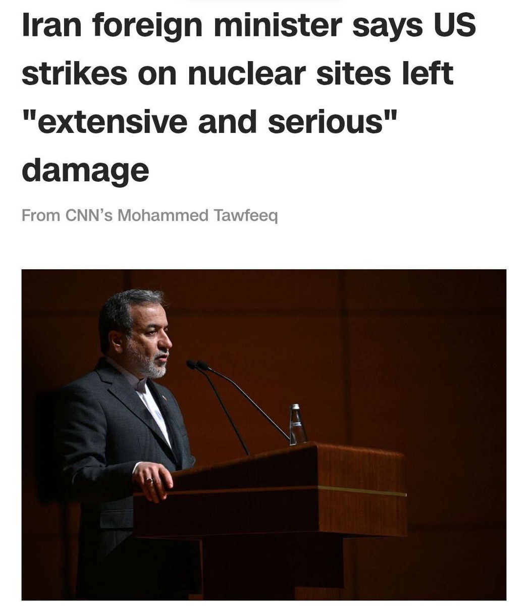 Иран перенял стратегию главы нацразведки США Габбард: чем сильнее ядерные объекты «разбомблены», тем меньше Трамп хочет их бомбить дальше Глава МИД Ирана Арагчи: Я должен сказать, что ущерб обширен и серьезен, но решение о том, приедут ли инспекторы МАГАТЭ и будут ли они полностью проинформированы, должно быть принято в соответствии с законом парламента Про допуск инспекторов МАГАТЭ будет торг. Только они способны объективно оценить повреждение оборудования ядерных объектов. То, что Штаты предлагают Ирану $30-40 млрд на мирный атом, говорит что о том, что с «уничтоженными» объектами не всё однозначно.