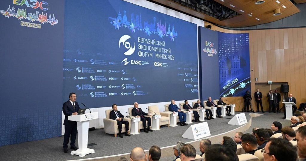 Кыргыз Республикасынын Президенти Садыр Жапаров Минскидеги IV Евразиялык экономикалык форумда өнөр жай кооперациясын бекемдөөгө жана санариптик трансформацияга басым жасоону сунуштады. 🌍 Президент Садыр Жапаров Минск шаарында өткөн IV Евразиялык экономикалык форумга катышты. Ал Евразиялык экономикалык интеграциянын стратегиясы жана келечектеги өнүгүү жолдору тууралуу сөз кылды. 🏭 Кыргыз Республикасы акыркы жылдары Евразиялык экономикалык союздун алкагында өнөр жай кооперациясын бекемдөөгө өзгөчө маани берүүдө. Бул багытта каржылык колдоо механизмдери натыйжалуу чаралардын бири болуп калды. 💡 Бирок, бизнес баштапкы этапта арыз берүү жана талаптарды аткарууда кыйынчылыктарга туш болууда. Президент Жапаров жабдууларды жана тетиктерди жеткирүү шарттарын кайра карап чыгууну сунуштады, айрыкча кичинекей экономикасы бар өлкөлөр үчүн. 🔄 Экономиканы модернизациялоо боюнча системалуу кадамдарды жасоо зарыл. Бул өндүрүштү локалдаштырууну жогорулатуу, чакан жана орто бизнес менен кластерлерди