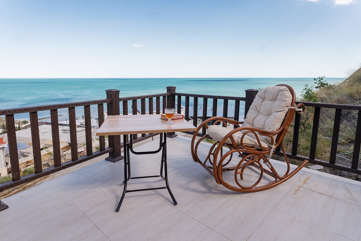 Терраса - как часть проведения досуга на отдыхе на море. Слово «терраса» заимствовано русским языком в XVIII веке из французского (terra — «земля») История террас уходит корнями в глубокую древность, когда люди впервые начали строить жилища и обустраивать прилегающую территорию. Первые упоминания о террасах встречаются в древнегреческой культуре. Конструкции из столбов и перекладин (перголы) использовались для поддержки виноградных лоз и других вьющихся растений. Такие сооружения создавали тенистые зоны для отдыха и общения, защищая от палящего солнца. Сегодня террасы играют важную роль в архитектуре зданий и становятся продолжением пространства. Терраса обеспечивает комфортный отдых на свежем воздухе, где можно расслабиться, насладиться видом на море или озеро, провести время с друзьями и семьёй. Она подходят для завтраков, обедов и ужинов и непринуждённых бесед за чашкой чая. Представьте: теплые крымские вечера, уже жара спала, и Вы под шум моря на открытой террасе насла