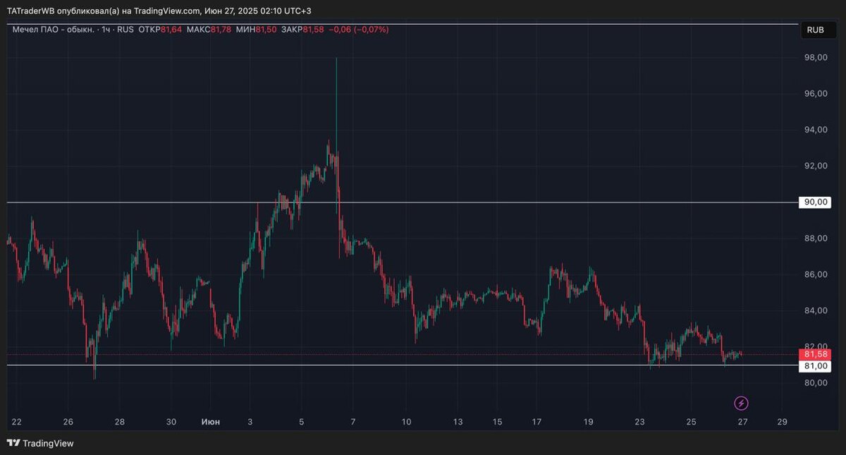 📝 Вчера индекс закрылся достаточно НЕ понятно, а значит сегодня буду работать исходя из уровней. Поэтому: $MTLR Планирую присмотреть шорт на пробой 81. ❗️ Стоп поставлю 0,5%. Тейк +1-1,5% При достижении +0,5% поставлю стоп в без убыток.НЕ призыв к действию! Больше идей в Базе. ВНИМАНИЕ!!! Это условия торговли, то есть ЕСЛИ Мечел придет к уровню, зайду. НЕ придет, НЕ зайду!!! Могут выйти новости, это остается доп риском и это НЕВОЗМОЖНО спрогнозировать! Если Мечел, ДО пробоя уровня будет выше 82 - идея не актуальна! Торгую ТОЛЬКО первое касание! 🤝
