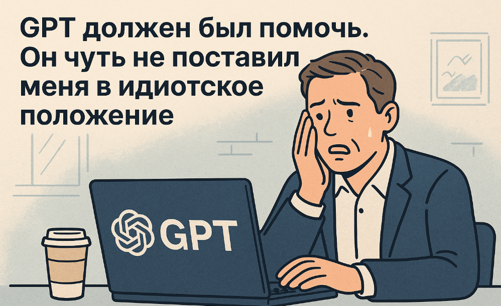 Попросил GPT: «сделай красиво, убедительно, с намёком на премиальность». Он выдал шикарный текст. Я не глянул — отправил.Через 15 минут: «Извините, а почему вы обращаетесь ко мне, как к женщине, если я — Алексей?» GPT вставил имя из старого запроса. А я не проверил. На автомате. Потому что доверился. Вывод? Автоматизация — это не волшебство. Это партнёр, которого надо контролировать.