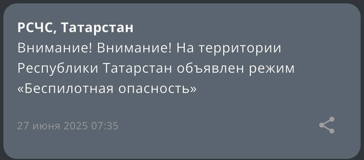❗️◽️◽️◽️В Татарстане объявлена угроза «беспилотной опасности