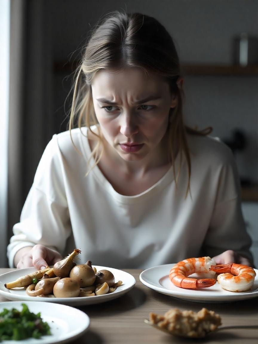 Примерно так начинается мой гастрономический свод законов. Хотите — считайте это фуд-капризами. Но я бы сказала — это стадии неприязни к продуктам. Погнали! 1. Стадия "выковыриваю, но ем" Это, например, болгарский перец. Терпеть не могу. Не из-за вкуса — из-за текстуры. Но если он в супе или в мясной подливе — я его добросовестно выковыриваю. Всё остальное ем. Но перцу — нет. 2. Стадия "я всё чувствую" Это лук. Даже если его там “нет”. Особенно мамы и бабушки любят говорить: — Да ты что! Там лука нет! Там даже и не поймёшь! Там его чуть-чуть! — Ага, конечно. — говорю я и с первой ложки понимаю, что лук там не просто есть, а он ещё и чувствует себя прекрасно. Вот лук не пройдёт. Особенно варёный или тушёный. У него такое послевкусие, что всё блюдо становится… луковым. Бррр… 3. Стадия "даже рядом не кладите" Это грибы. Тут вообще без шансов. Даже если они просто лежали *рядом* на тарелке — всё, мне уже не по себе. Не пробую. Не нюхаю. Не трогаю. Не люблю. 4. Стадия "ещё организм