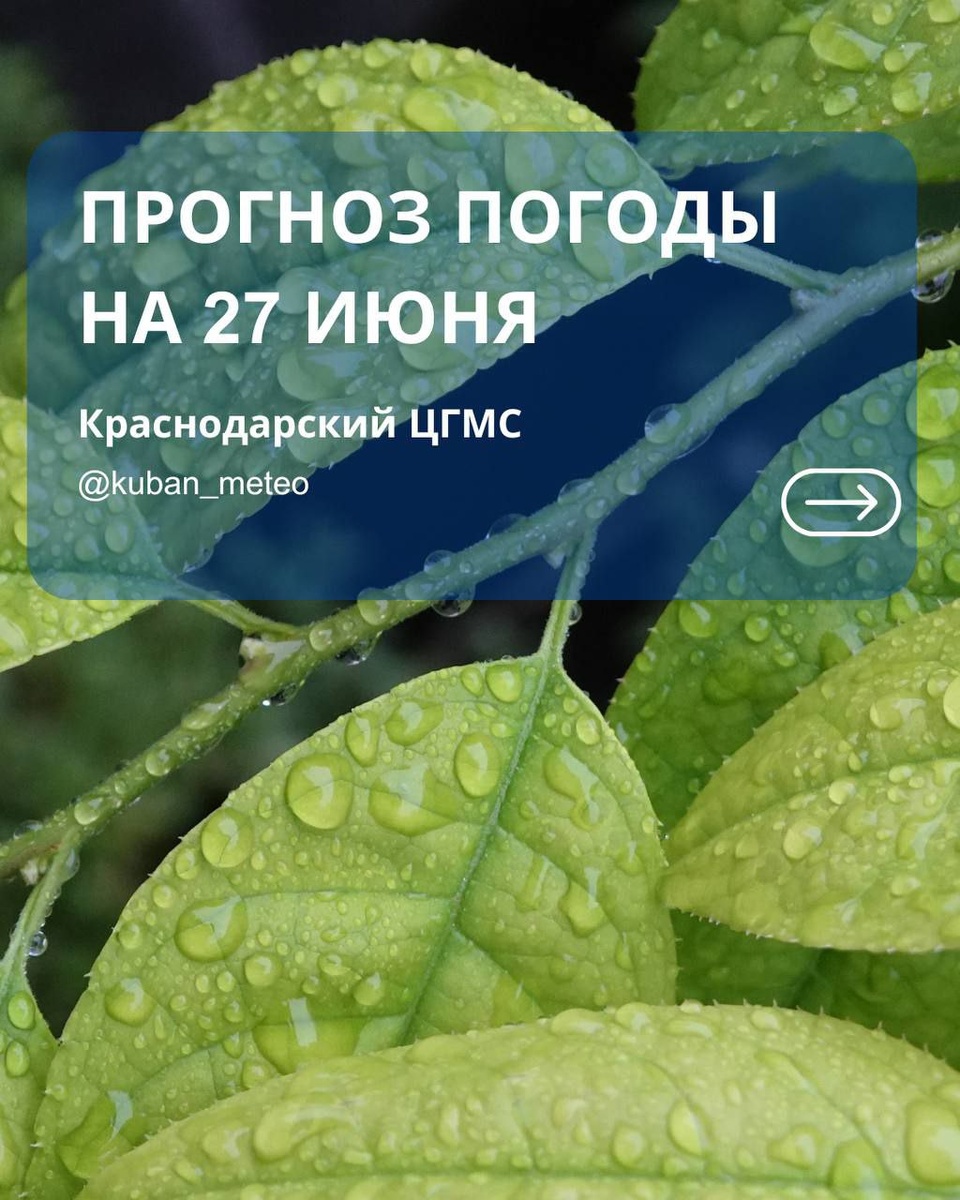 🌦️Прогноз погоды в Краснодарском крае на 27 июня