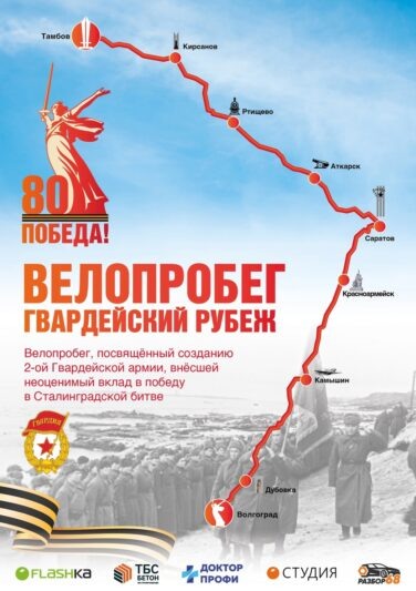 Путешественник уже посетил Ртищево и Аткарск, впереди — Саратов, Красноармейск, Камышин и Дубовка. Завершится велопробег «Гвардейский рубеж» на Мамаевом Кургане у мемориала «Родина-Мать».