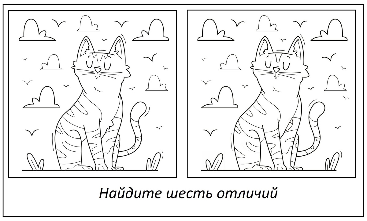 Сегодня новое задание из раздела найдите отличии. Перед вами милый кот, ней первый взгляд картинки одинаковые, однако между ними есть 6 отличий. Найдите их пожалуйста все?