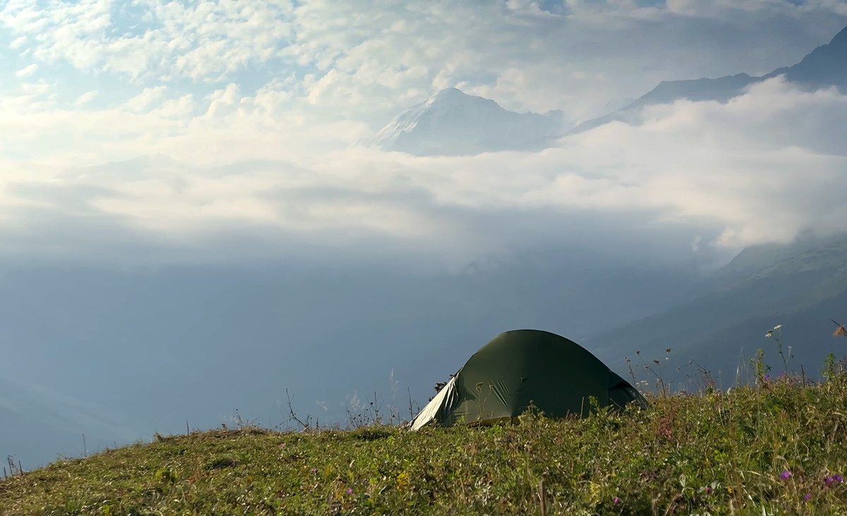 37-й день похода по Кавказской тропе. Первые лучи солнца рано утром добрались до моей палатки, стоящей на склоне горы под Архонским перевалом.