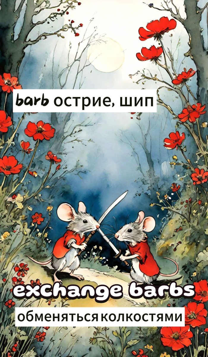 Термин barb - шип, колючка, острие - в современном языке слово может означать остроумный комментарий в чей-либо адрес с ноткой сарказма. A playful barb among friends - шутка в кругу друзей с целью немного подразнить, но не обидеть. В более серьезных контекстах barb - означает критику чьих-либо действий или убеждений. В социальных сетях люди также могут обменяться колкостями, таким образом they exchange barbs.