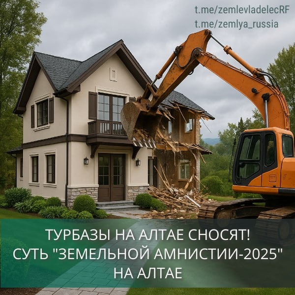 🏕 Турбазы на Алтае сносят! Суть Земельной амнистии-2025 на Алтае ❌ Если вы ведёте бизнес на участке без оформления — особенно в туристических регионах вроде Алтая — время пошло. Власти начали снос незаконных баз, а «земельная амнистия», которая могла бы спасти объект, уже работает. Разберёмся, что происходит и как не попасть под бульдозер 👇 --- 🚧 Что случилось в Алтае? Глава региона Андрей Турчак заявил: снесут как минимум 🏚 50 незаконных турбаз, и этот список будет расширяться. Некоторые объекты ликвидируют внесудебно, остальные — по решению суда. Речь идёт о владельцах, которые могли узаконить свои постройки, но проигнорировали упрощённую процедуру — земельную амнистию. --- 📜 Что такое земельная амнистия в Республике Алтай? Это шанс легализовать самозастрой или использование участка без разрешений — без бюрократии и штрафов. Программа в Республике Алтай стартовала с января 2025 года и проходит поэтапно: 1️⃣ Сбор заявлений — от владельцев туробъектов; срок на этот этап