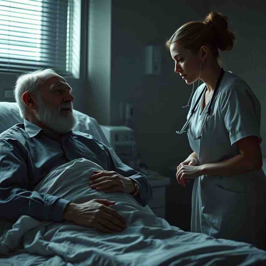 Умирающий олигарх, поддавшись сомнению в искренности чувств молодой жены, договорился с верной медсестрой инсценировать еще более критическое ухудшение его состояния. Сначала он увидел, как жена, находясь в шоковом состоянии, застыла на месте. Затем, вместо привычных тревоги и отчаяния, на её лице проступило оттенок нечто, казалось бы, неуместного облегчения.