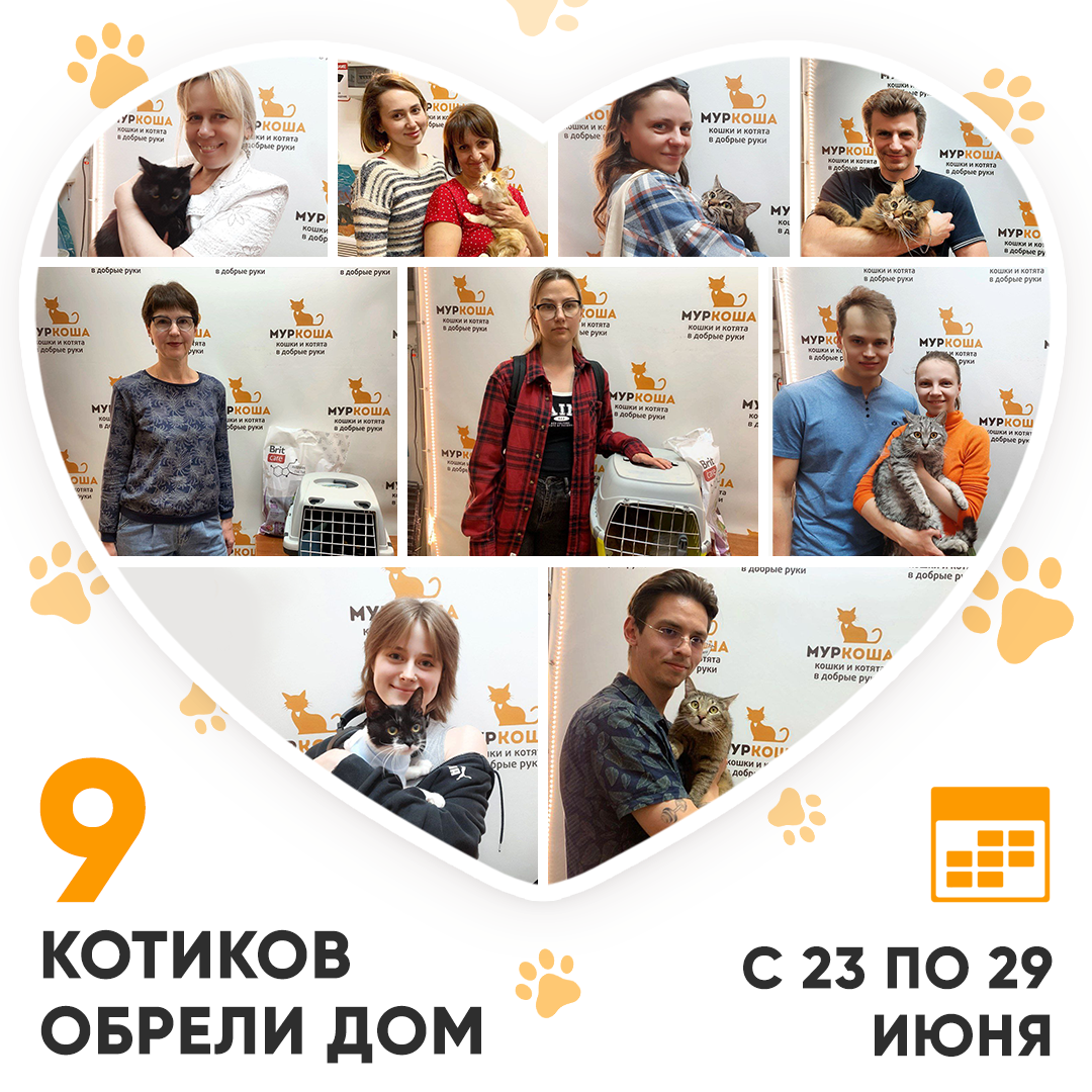Друзья! Сегодня среда, и мы, как обычно, подводим итоги работы «Муркоши» за прошедшую неделю. Кто же стал счастливым выпускником Центра помощи кошкам «Муркоша» с 23 по 29 июня 2025 года? 😺 🥳 Итак, за прошедшую неделю домашними и любимыми стали 9 котиков! Ранее кошечка проживала на улице. Но затем девочке улыбнулась удача. Она оказалась в приюте, где вскоре нашла добрую хозяйку! С ней Берёзка уехала домой, где её ждал наш выпускник Рос. Когда-то Халк был домашним, однако в связи с некоторыми обстоятельствами котику потребовалось найти новый дом. Мы очень рады, что в «Муркоше» у Халка получилось очаровать заботливого человека! Рыжий котик был найден на улице. Его уже забирали домой из приюта, но Ёршик вернулся обратно. Зато сейчас мы можем сказать, что у мальчика всё плохое позади – он встретил свою судьбу! Очень пушистая Мисс Мявочка была обнаружена на улице, у аптеки. К счастью, кошечка оказалась у нас приюте. Через некоторое время она уехала домой к выпускнице «Муркоши» – кошечке
