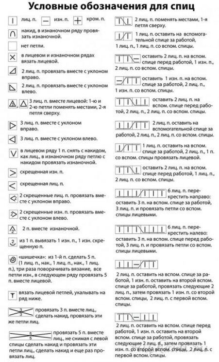 На схемах используются специальные символы, которые обозначают разные элементы вязания. Обычно они расположены внизу или сбоку схемы. Изучите эти обозначения, чтобы понимать, что они означают.