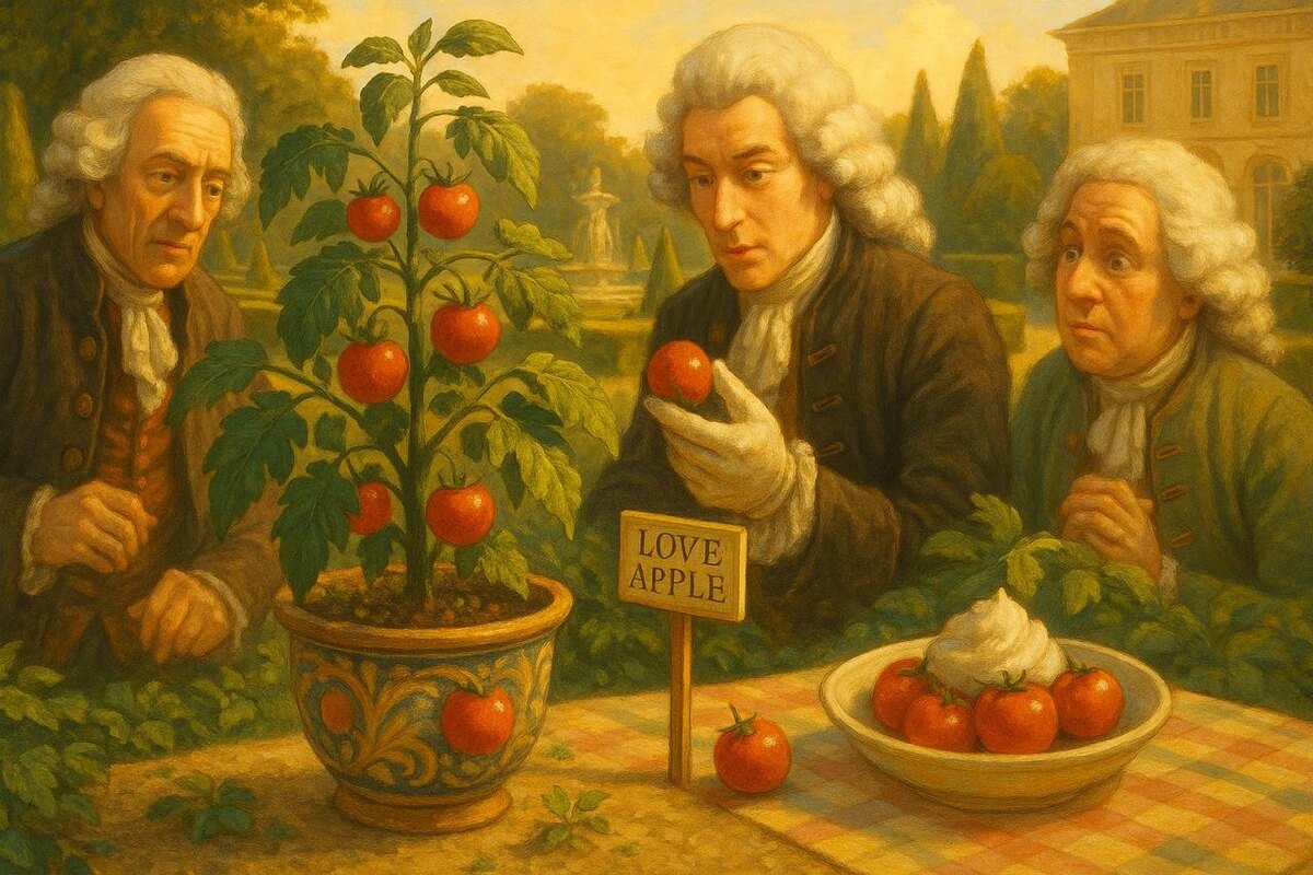 🍅 «Яблоко любви»… или смертельный плод? 😱💔 Сегодня томаты — звезда любого салата 🥗, но несколько веков назад в Европе их боялись! До XVIII века помидоры считались ядовитыми, и выращивались исключительно как декоративные растения 🌿 🌹 Их ярко-красные плоды называли «яблоками любви» — звучит романтично, но к столу не подавали. Почему? 🍽️ Посуду знати изготавливали из олова, а кислотный сок томатов вступал в реакцию с металлом, выделяя токсичные вещества. Люди травились… и винили помидор 😅 📜 Лишь позже учёные поняли, что томаты — не враг, а вкусный союзник. Вот так 🍅 из подозреваемого стал героем пасты, пиццы и супа 🏆🍕 #интересныйфакт