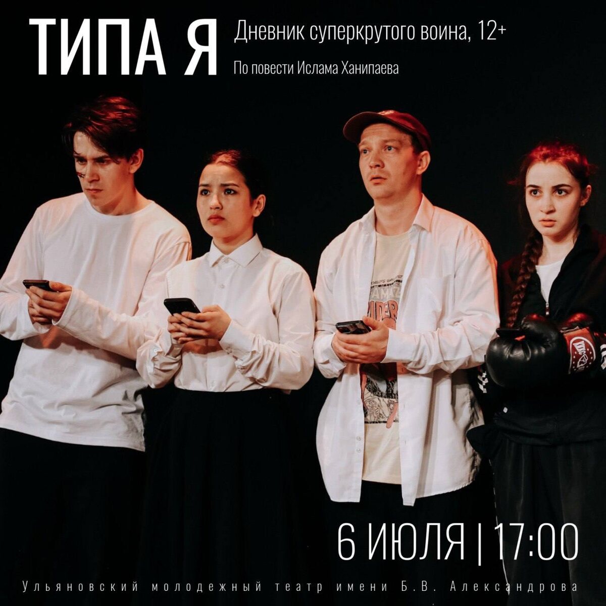 Премьера спектакля «Типа Я» в День закрытия творческого сезона 🗓️ 6 июля в 17.00 📍Ульяновский молодежный театр имени Б.В. Александрова В основе спектакля дебютная повесть сценариста и режиссера Ислама Ханипаева. Сюжет представляет собой историю взросления ребенка, которая рассказана от первого лица. Это история о принятии непростой правды жизни, о силе воображения и о том, как важно оставаться собой, даже когда весь мир против тебя. Пронизанный светлым юмором спектакль позволяет зрителю пройти путь вместе с героем, погрузиться в мир детских фантазий и страхов. 🏷️ 600₽ Билеты 🎟️ #6июля25