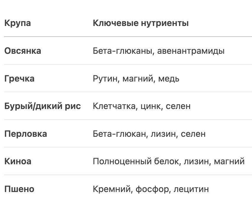 Сводная таблица: Ключевые преимущества круп для поджелудочной железы после 50