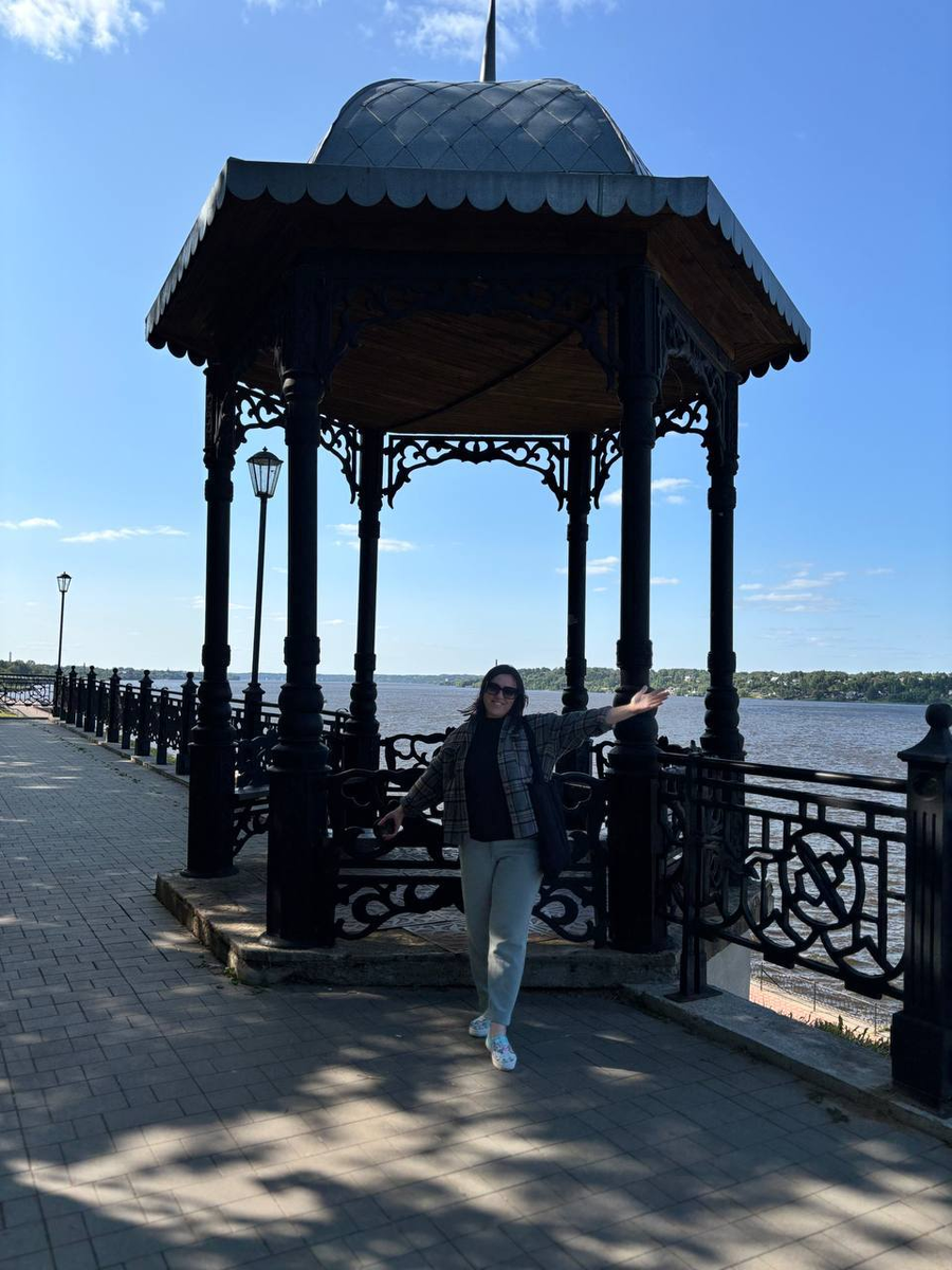 Мой ТГ-канал На прогулку было всего 1-1,5 часа. Набережная двухуровневая. Внизу красивый парк Стрелка с лавочками, качелями, цветами и сувенирами, как и подабается😉 также там расположен ресторан, дебаркадер-гостиница, прокат и причалы с теплоходами. Кстати прокатиться по Волге в Кинешме можно каждые 40 минут. Теплоход вместительный, поместятся все желающие. На втором уровне расположены красивые беседки и с него открывается величавый вид на водную гладь. Тут же можно сфотографироваться с огромным самоваром, а неподалеку заглянуть в чайную - ресторан «Русская изба». Здесь подают чай с фритюрным пирожком по-кинешемски -местный гастрономический бренд. Зайти, к сожалению, и испробовать не успели. Очень спешили. На торговой площади сейчас расположена живописная зона с фонтанами. Было прекрасно посидеть здесь на красивых деревянных лавочках, среди цветов и под успокаивающий звук воды) От Островского до Кинешмы мы доехали за час. Дорога в Костромской области оставляет желать лучшего, н
