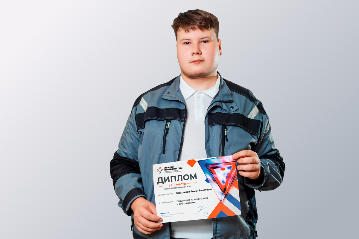 Студенту 3-го курса по направлению «Промышленная робототехника» Роману Гизетдинову необходимо было запрограммировать технологический процесс промышленного робота KUKA, контроллер Siemens, а также решить кейс-задачи и пройти тестирование. Роман показал лучший результат среди участников и заслуженно получил высокую оценку экспертного жюри. Его победа была отмечена дипломом победителя в номинации «Робототехника и мехатроника», а также правом представить Республику Татарстан на федеральном этапе конкурса.