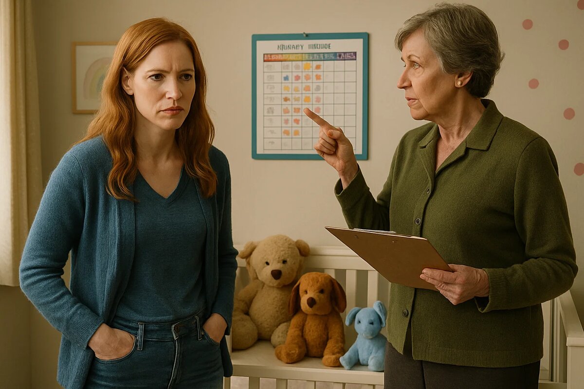 Приготовлен обед. Разложены детские вещи. На холодильнике — расписание: сон, прогулка, еда. И всё — по указке свекрови.