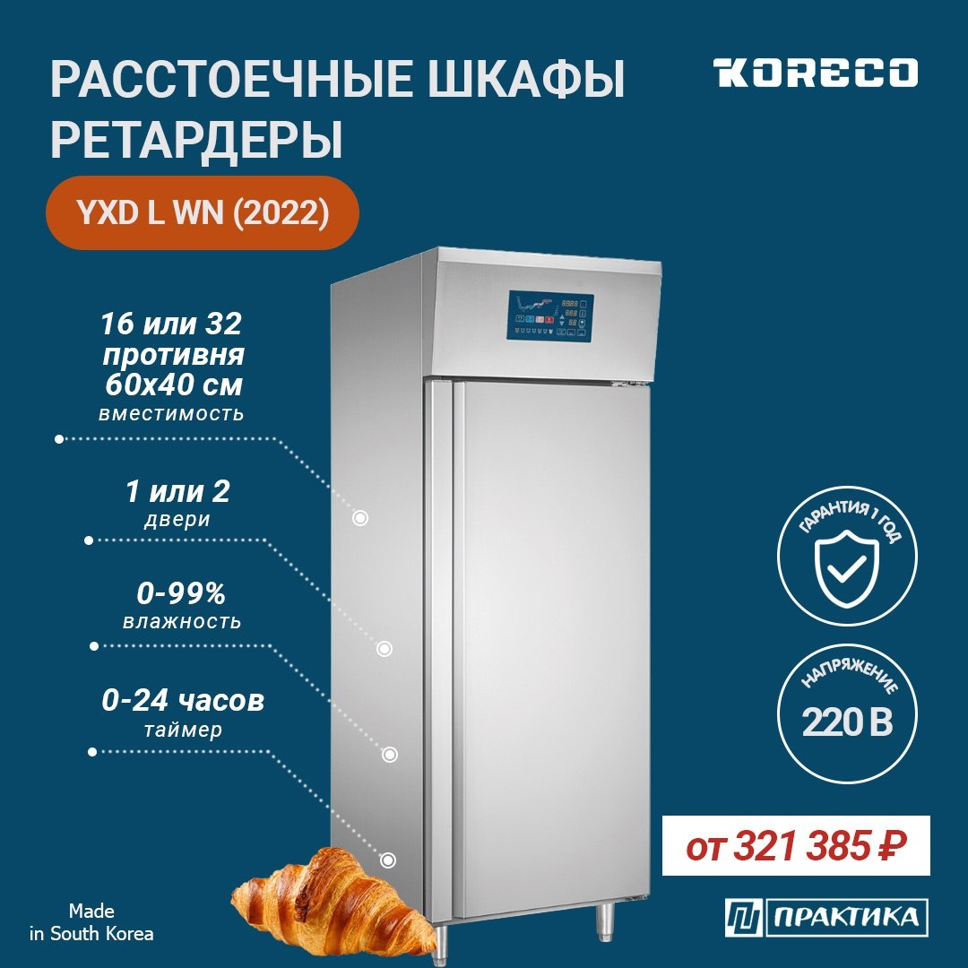 🥐 РАССТОЕЧНЫЕ ШКАФЫ С ФУНКЦИЕЙ РЕТАРДЫ (отложенной расстойки) KORECO YXD L Сразу две новости, о которых мы не можем больше молчать😅: 1️⃣ Только что на складе в РАЗВИЛКЕ приняли расстоечные шкафы с функцией ретарды, которые многие из вас ждали! Теперь в наличии модели вместимостью на 16 и 32 противня: ◽️Koreco YXD L16 WN (2022) – 16 противней, 1 дверь ◽️Koreco YXD L32 WN (2022) – 32 противня, 2 двери 2️⃣ Линейка пополнилось новой моделью С СЕНСОРНОЙ ПАНЕЛЬЮ УПРАВЛЕНИЯ 🆕 Koreco YXD L 16 NW LED – 16 противней, 1 дверь Коротко о принципе работы: Расстоечные шкафы с функцией отложенной расстойки KORECO YXD L - тот случай, когда вы заботитесь не только о качестве выпечки, но и о комфортных условиях труда ваших сотрудников. Как правило, вечером в пекарнях идет замес и формовка изделий, выпечка которых запланирована на раннее утро следующего дня. В этом случае ваши пекари смогут настроить автоматический режим работы расстойки - retarder proofer. По факту это последовательное автома