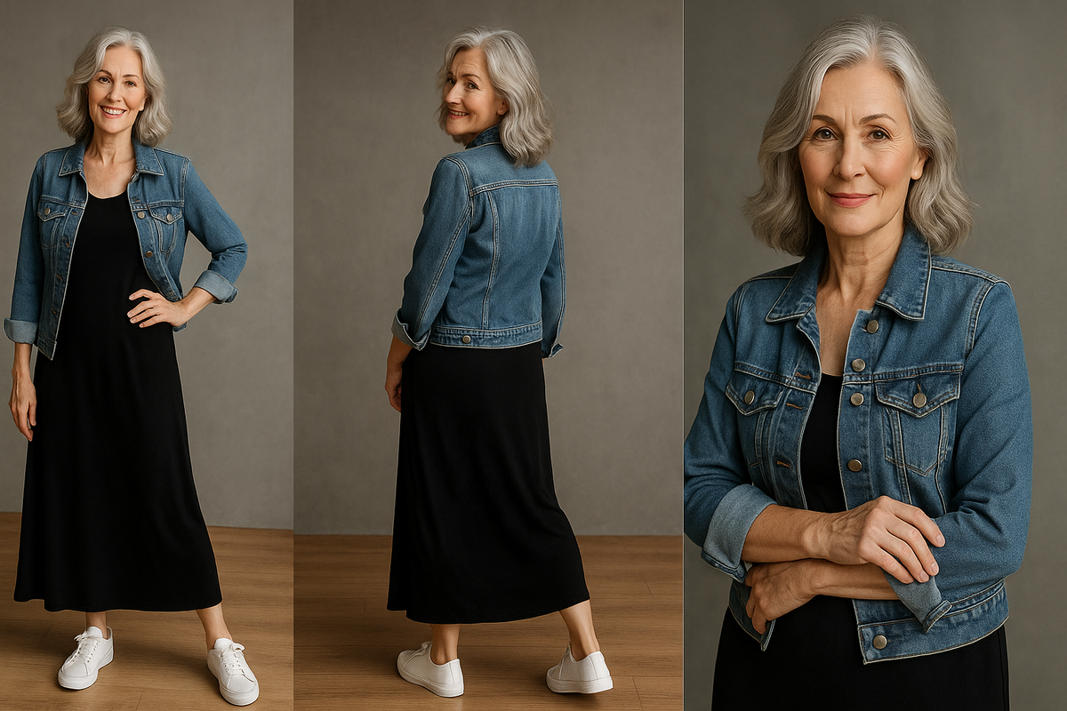 Мне 57, я стилист. И знаете, что чаще всего говорят мне клиентки, глядя в зеркало в чёрном платье? — «Что-то будто усталая выгляжу…» Хотя само платье — стильное, правильное, с красивым кроем. Вот в чём загвоздка: чёрный — коварный цвет. Он либо подчёркивает достоинства, либо вытягивает всё живое с лица. Особенно после 45. Но есть приёмы, которые его “приручают” — я покажу 7 безупречных сочетаний. И в финале расскажу один редкий лайфхак, который освежает образ лучше тонального крема. Классика, говорите? Возможно. Но у классики — свои капканы. Вот три главные ошибки, из-за которых чёрное платье визуально добавляет возраст: Запомните: чёрный — не главный герой, он должен играть в ансамбле. Каждое — проверено на клиентках 45+. И каждое — визуально освежает. Повседневный вариант, который делает образ моложе на 10 лет. Чёрное платье в комбинации с белой обувью — всегда выигрыш. А джинсовка вносит легкомысленную нотку. 📌 Куда носить: прогулки, поездки, кафе 📌 Кому подойдёт: всем, кроме очен