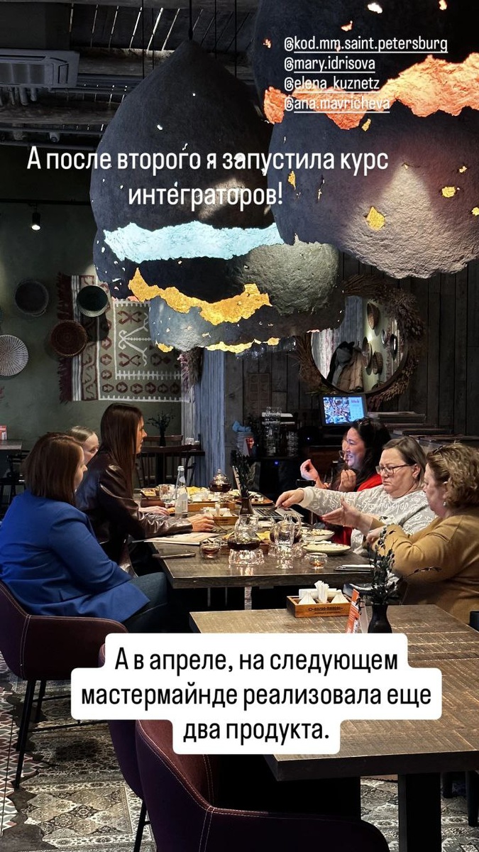 Дорогие друзья! Хочу рассказать о своем опыте участия в мастермайндах. После первого мастермайнда у меня появился продукт "Про Род". На втором мастермайнде я запустила курс для интеграторов. В апреле, на следующем мастермайнде, я разработала еще два продукта и достигла системности в своей работе. Кроме того, это отличная возможность каждую неделю встречаться в ресторане с людьми, настроенными на успех! Осталось 1 место на офоайн мастермайнд в Санкт-Петербурге, если хочешь с нами пиши в личные сообщения @Yulia_soulsolo