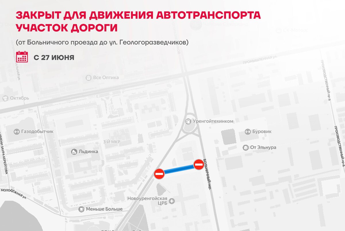 ❎ Временно нет проезда В связи с ремонтными работами с 27 июня закрывается для движения транспорта участок дороги между Больничным проездом и улицей Геологоразведчиков. Неудобства временные. Объехать перекрытый участок можно по улице Геологоразведчиков. ❤️ НУР. Официально