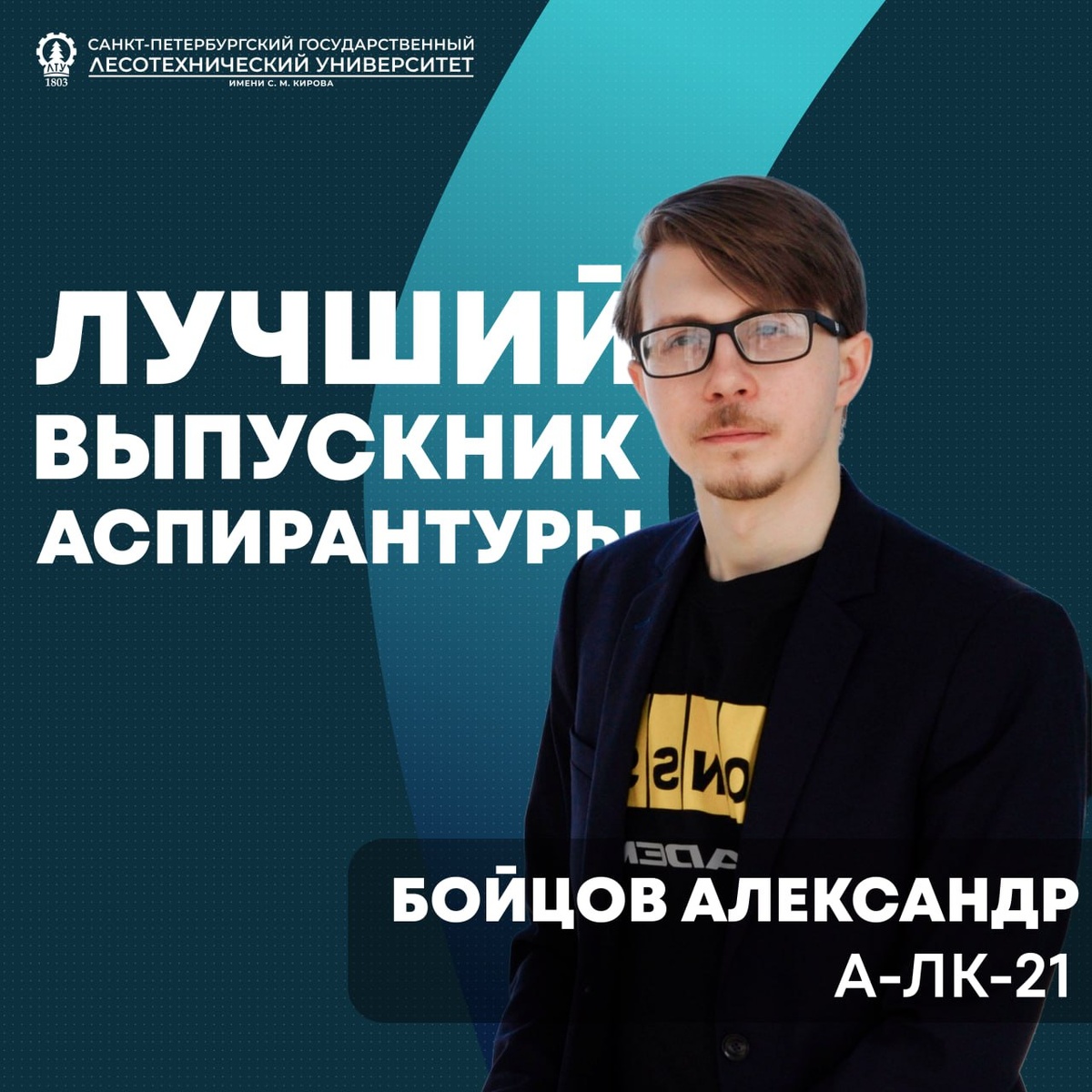 Поздравляем лучшего выпускника аспирантуры СПбГЛТУ – 2025!🌟 Александр Бойцов – гордость аспирантуры!🔬 Александр завершает обучение в аспирантуре, зарекомендовав себя как дисциплинированный, самостоятельный и целеустремленный исследователь. За время обучения он проявил себя как активный и требовательный к себе аспирант, успешно справляющийся с самыми приоритетными задачами в теоретическом обучении и на практике. Подтверждением его высокого уровня является получение стипендии Президента Российской Федерации для молодых ученых и аспирантов за разработку искусственных нейронных сетей для определения перспективности использования различных пород древесины в лесовыращивании👨🎓 Александр не только преуспел в научной деятельности, но и активно участвовал в жизни университета, с 2017 по 2024 являясь председателем оргкомитета ежегодной международной научно-практической конференции «Актуальные вопросы лесного хозяйства», а в 2023 году организовал Фестиваль современного технического творчес