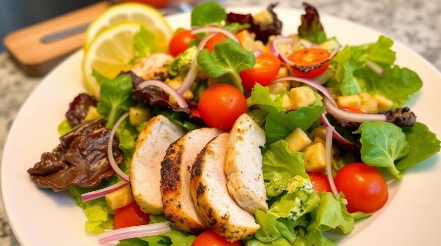Предлагаем вам познакомиться с пятью оригинальными рецептами салатов с курицей, которые удивят ваши вкусовые рецепторы и станут прекрасным дополнением к любому столу. 1. Салат с курицей и манго Ингредиенты: - отваренная куриная грудка; - спелое манго; - салатный микс (руккола, шпинат); - красный лук; - грецкие орехи; - лимонный сок и оливковое масло для заправки. Сладость манго и пикантность лука создают неповторимый контраст вкусов, который подчеркивается нежностью курицы и сливочностью грецких орехов. 2. Цитрусовый салат с курицей и грейпфрутом Ингредиенты: - запеченная курица; - грейпфрут; - авокадо; - зеленый лук; - кинза; - соус на основе меда и горчицы. Сочетание сочного грейпфрута и авокадо придает салату освежающий вкус, который идеально дополняется пикантной курицей и ароматной кинзой. 3. Салат с курицей и киноа Ингредиенты: - куриная грудка на гриле; - киноа; - свежие помидоры черри; - огурец; - красный перец; - лимонная заправка с чесноком и зеленью. Сытность киноа и свежест