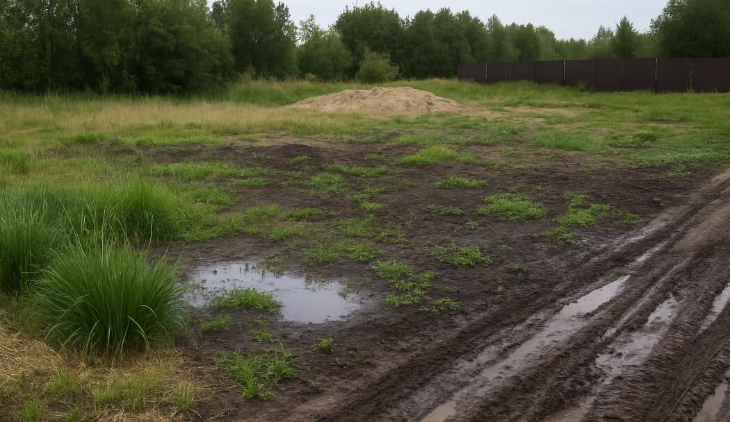 У нас на участке раньше была яма, где вода стояла неделями — там не росло вообще ничего. Пришлось засыпать и выравнивать.