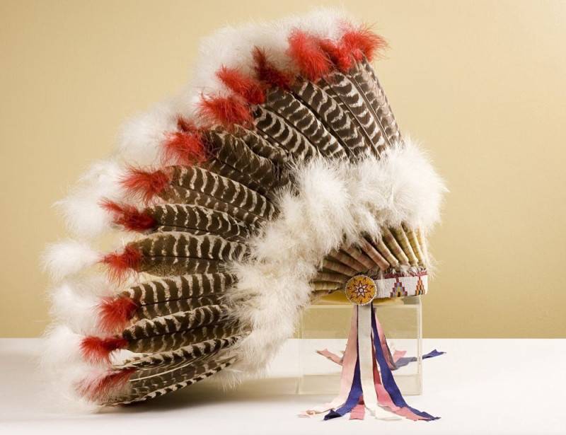 Головной убор вождя северо-американских индейцев, подаренный Индейской конфедерацией Америки И.В. Сталину в честь его избрания «почётным вождём». 1941. Цветная фотография