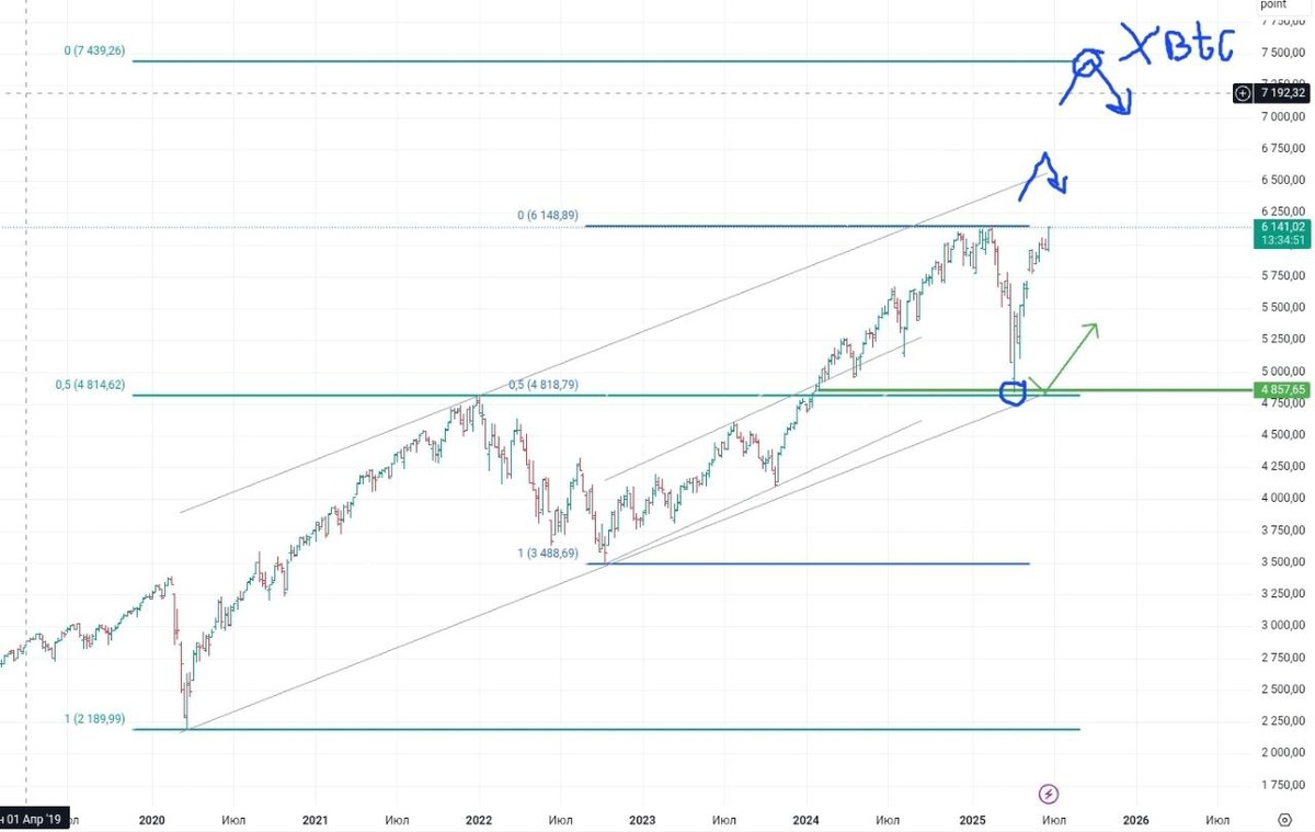 Просматривал SP, движение в кружочке было отработанно идеально. Первая цель это выход в перекупленность, а далее закрытие модели выше 7000. Там я буду продавать Биток.