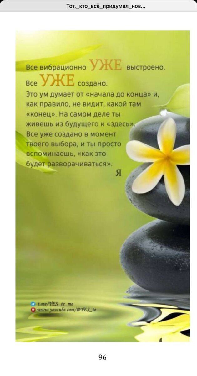 Нет никаких противоречий , кроме противоречий в уме. 🎆🎆🎆🎆🎆🎆 Мне близка позиция, что контрасты рождают желания, что именно из неудовлетворённости чем-то можно получить понимание того, что ты хочешь на самом деле, двигаться в сторону желаемого. У lee, у Абов много говорится об этом. Но в последнее время часто встречаю утверждения противоположные этому. Что желание что-то изменить это несогласие с моментом, который совершенен. Что если ты недоволен ситуацией, если ты хочешь ее поменять, ты тем самым утверждаешь, что уже созданное ошибочно, неправильно, должно быть по другому, ты не согласен с проявлением источника. В итоге нужно просто принимать все ситуации, а все попытки работать с желаниями, это все иллюзии. Объясни пожалуйста эти противоречия, как ты классно это умеешь, спасибо! 🎆🎆🎆🎆🎆 Это НЕ противоречия. Их НЕТ. Противоречия создает ваш ум. Как в той притче: один слепой мудрец ощупывает хобот слона и говорит «это змея», другой ощупывает хвост-слона и говорит «это л
