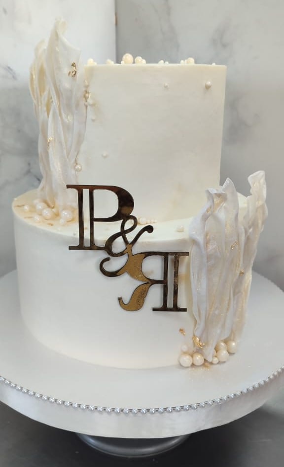 Уникальный дизайн с гравировкой «P & R», воздушный крем и элегантные украшения – этот заказанный торт покорит всех на вашем празднике