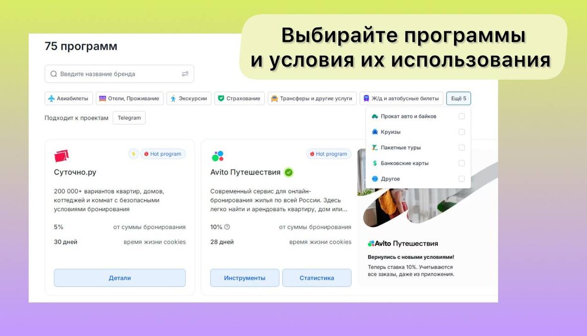 ✈️ Хотите зарабатывать на своих путешествиях? Тогда вам точно сюда! Работаете в офисе и постоянно в разъездах? Или ведете блог и делитесь крутыми местами? Тогда слушайте! 🔊 Я нашла классный сервис — TravelPayouts. Тут можно подключить 75 программ и зарабатывать с каждого путешествия: билеты, отели, экскурсии, аренда авто и байков, страховки — всё, что связано с путешествиями! В личном кабинете есть крутой дашборд и отчёты — всё видно, всё под контролем. А ещё можно делиться своей реферальной ссылкой с друзьями и семьёй — и получать около 10% с каждого бронирования! 🤑 Пользуйтесь сами, делись и зарабатывайте — всё просто! Если интересно — переходите по ссылке: https://www.travelpayouts.com/ru/?marker=639128 И если что — пишите мне, помогу разобраться!❤️ Вылазки офисного планктона