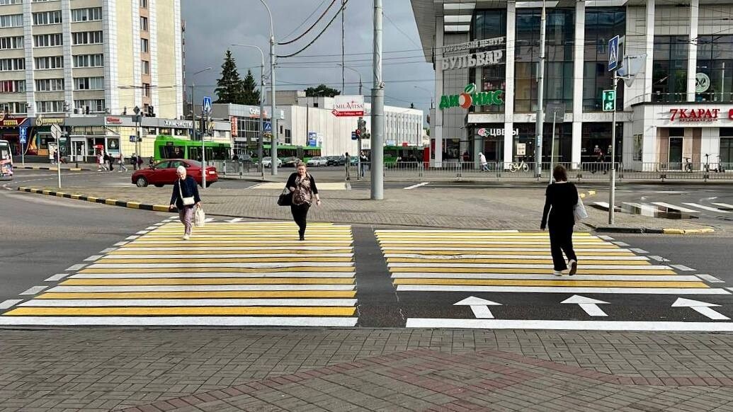 В Гомеле появилась новая разметка — двойная зебра с направляющими стрелками. Пока это единственный переход такого типа в городе. Что он из себя представляет, рассказали в УВД Гомельского облисполкома.