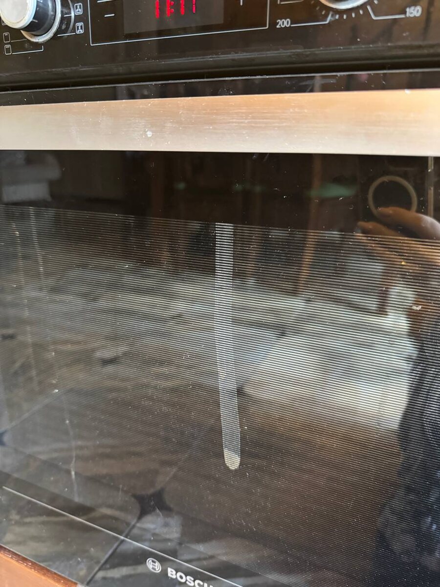 Домработница помыла духовку и затекло внутрь между стеклами.