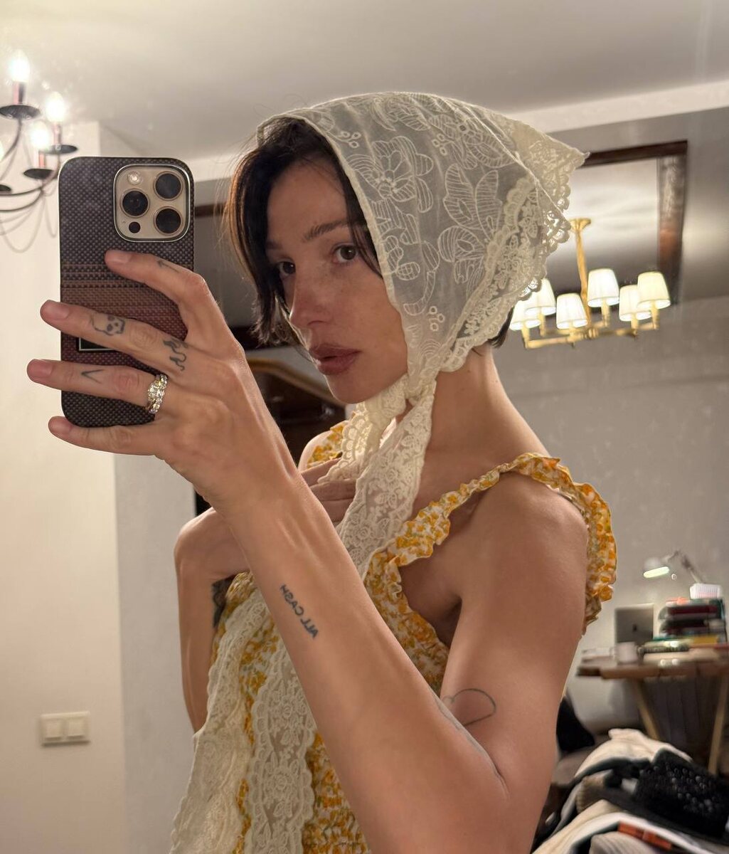 На фотографиях – Настя в платке, с ведром. Внешность блогерши стала проще, лицо – светлее. Она выглядит уставшей, но настоящей.
