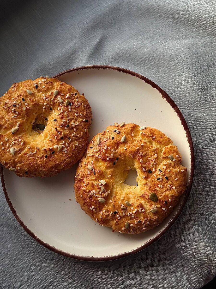 Творожные кольца на завтрак Творог 9% 1 уп. Мука рисовая 3 ст.л. Яйцо 1 шт. Разрыхлитель 0,5 ч.л. Желток (для смазывания) Смесь из семян (для украшения) Все ингредиенты смешать и хорошо перемешать. Разделить на 2 порции (2 шарика). Выкладываем на противень и делаем форму бублика. Смазываем желтком и присыпаем смесью из семян. Отправляем в духовку на 20 минут при температуре 180 градусов. #пп#булочка#безсахара#вкусно#творожнаябулка