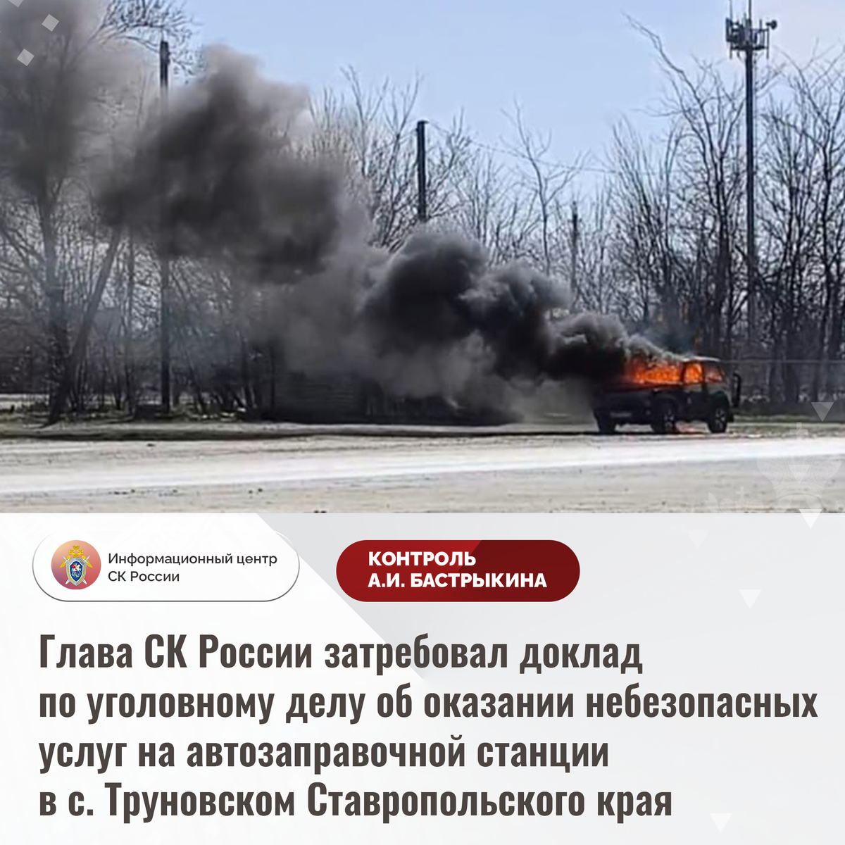 Глава СК России затребовал доклад по уголовному делу об оказании небезопасных услуг на автозаправочной станции в с. Труновском
