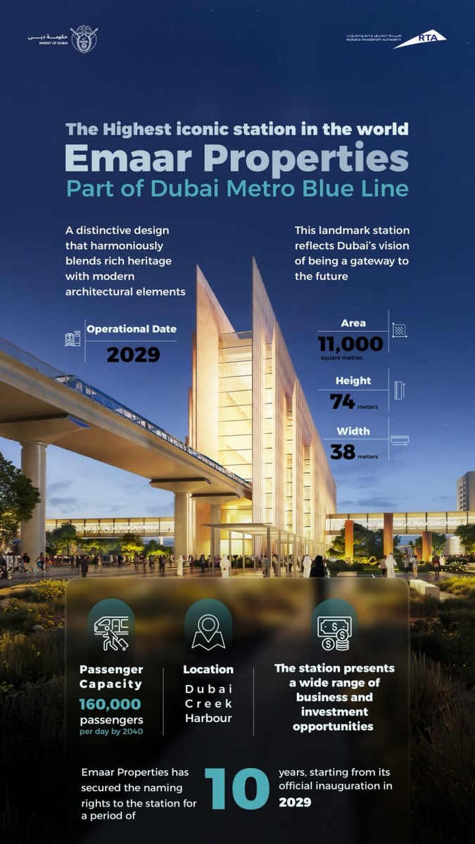 🇦🇪🚇Самое высокое метро будет в Дубае🔻 🏗 В 2029 году планируется открытие рекордной станции метро от Emaar Properties высотой 74 метра! Об этом сообщил Dubai Media Office. 🏙 Это будет архитектурная достопримечательность города. 🧠 Проект разработан студией SOM и станет частью новой Голубой линии метро. Стоимость реализации проекта — $4,8 млрд. 📐 Площадь станции — 11 000 м² 👥 Пропускная способность — до 160 000 пассажиров в день 📊 По прогнозам, к 2040 году — более 70 000 пассажиров ежедневно 🏙 Станция будет служить «новыми воротами» в район гавани Дубай-Крик. 🎨 Архитектура вдохновлена элегантной вертикальностью фирменных объектов Emaar. Другие новости: 🎨 Станция Jebel Ali переименована в National Paints — в рамках 10-летнего брендингового соглашения с одноимённой компанией. 📈 Станцию Burj Khalifa/Dubai Mall расширят на 65% — она сможет принимать до 220 000 пассажиров в день. 🏙Консультация по недвижимости Дубая 📲 WhatsApp YouTube | Instagram| Vkontakte| Facebook |