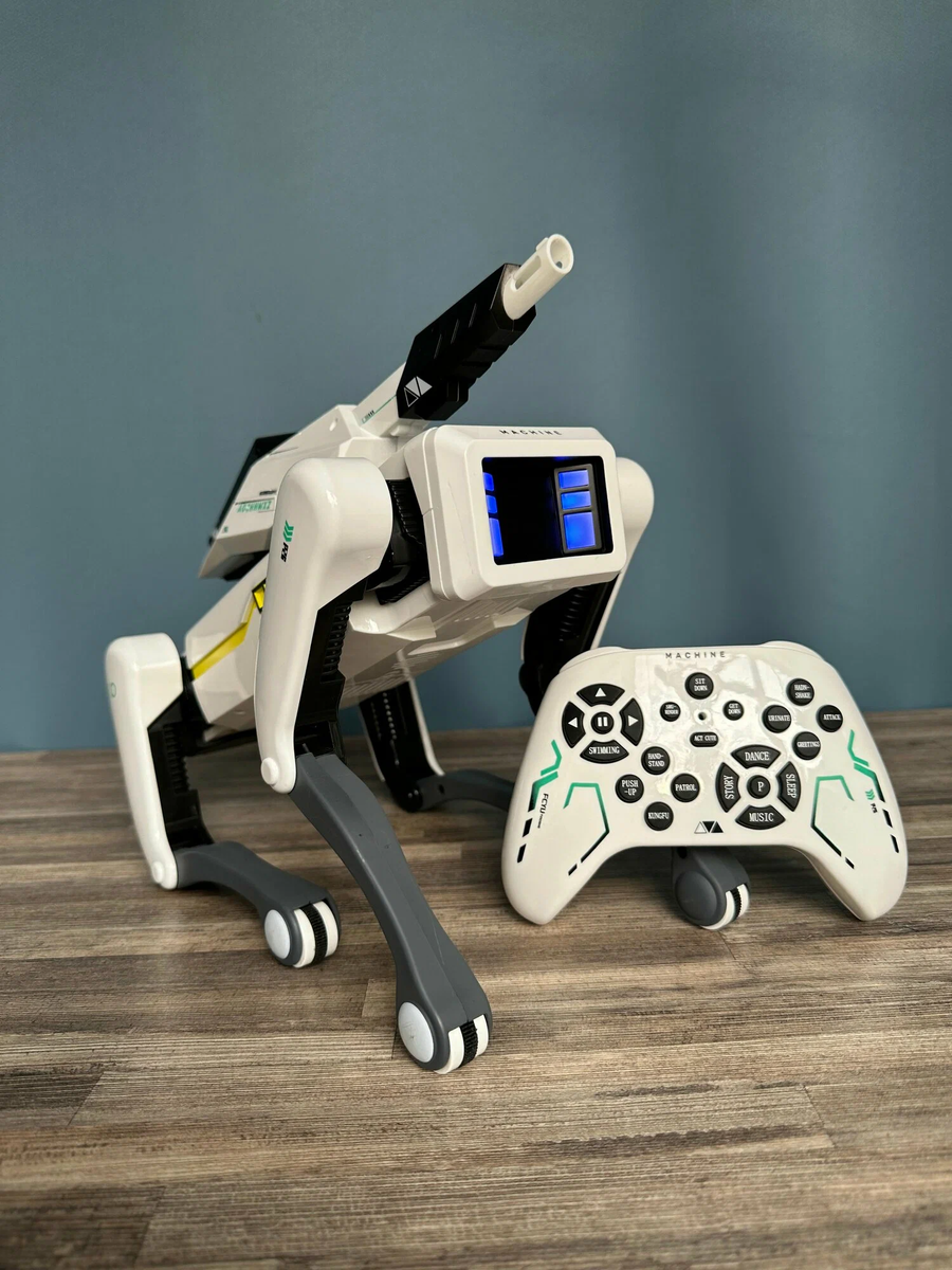 На арену выходит робо-собака с пушкой и пультом управления — и это не просто игрушка, а мини-гаджет с характером. Да, у неё реально есть пушка, она слушается команд, ездит, лает, двигает хвостом и реагирует на хозяина. 📌 Ссылка на чудо: