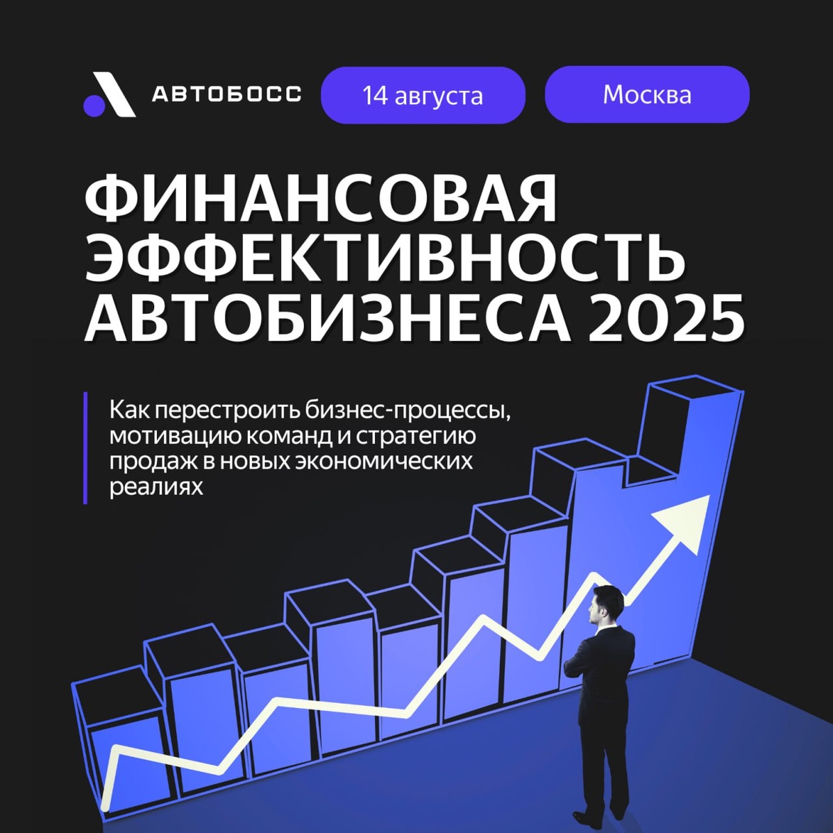 📈 Адаптация автобизнеса в условиях кризиса: обсуждаем на конференции АвтоБосс В апреле 2025 года продажи новых машин упали, и автобизнес переживает не лучшие времена. Но мы здесь, чтобы помочь вам адаптироваться и сохранить прибыль! На конференции вы узнаете: 1⃣ о влиянии макроэкономических факторов на автобизнес 2⃣ как меняется финансовая архитектура дилерского центра в новых условиях 3⃣ об изменениях в стратегиях продаж и портретном покупателе 4⃣ о новой роли кредитования и страхования в прибыли. 🌟 Успейте приобрести билет со скидкой 20% — действуйте до конца июня! Получить скидку → Присоединяйтесь к обсуждению и узнайте, как перестроить бизнес-процессы, мотивацию команд и стратегию продаж в новых экономических реалиях!