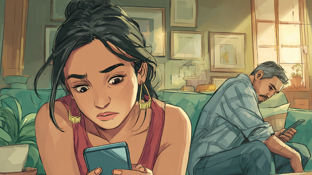 Людмила и Алексей были вместе больше 10 лет. (Пишу с разрешения клиента, имена изменены). Быт, дети, устоявшийся ритм жизни — казалось бы, всё под контролем. Но однажды Людмила случайно заметила, что муж всё чаще задерживается у телефона, уходит в другую комнату отвечать на сообщения, а после становится отстранённым и рассеянным. Подозрения копились, пока однажды она не смогла узнать пароль к его смартфону и не увидела длинную переписку с девушкой, заметно моложе себя.