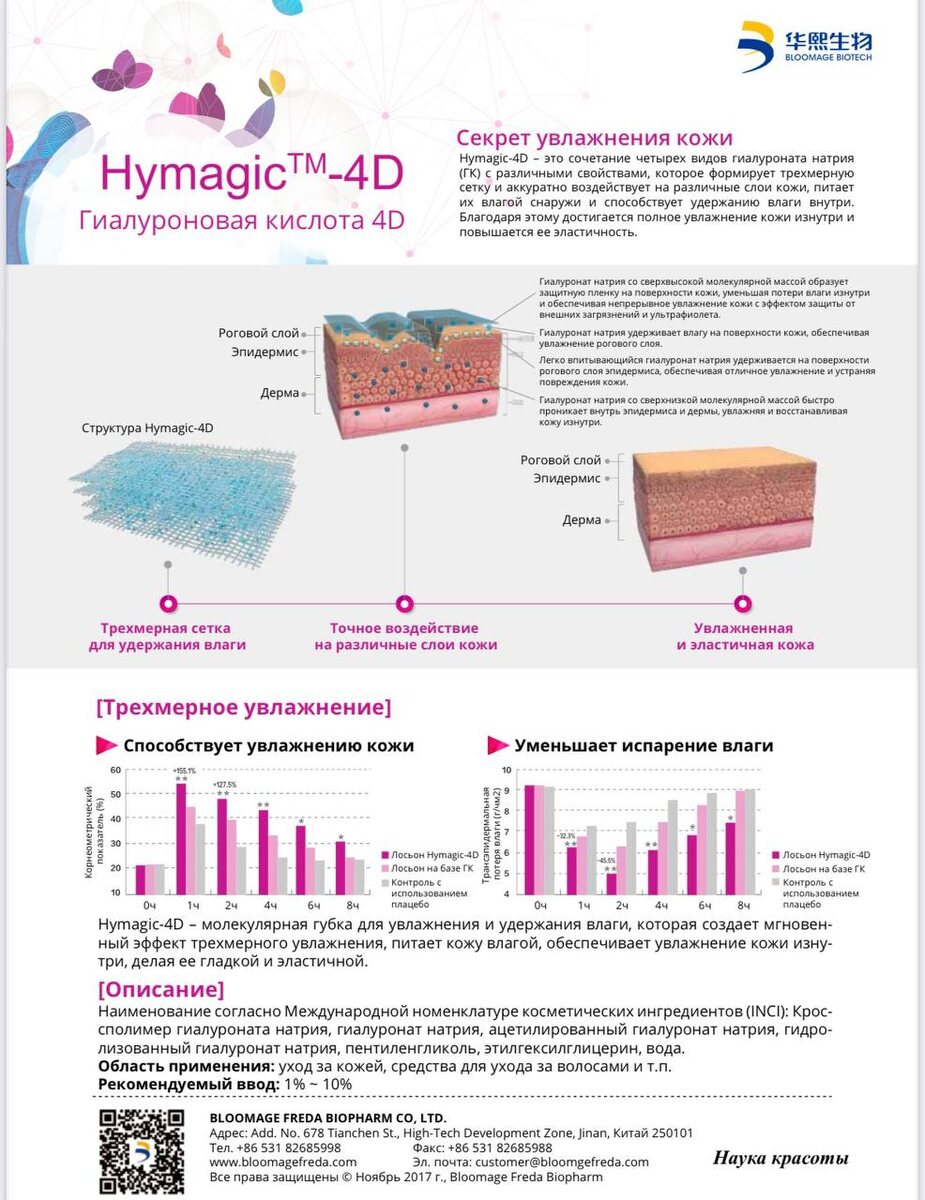 Синергетический комплекс из 4х видов гиалуроновой кислоты производится компанией Bloomage Biotech Co