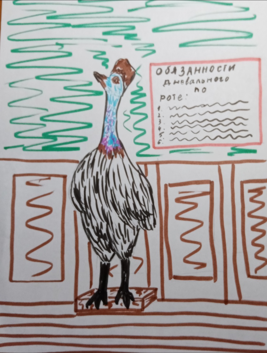 Это только говорится, что до бесконечности можно смотреть на три вещи: текущую воду, горящий огонь и работающего товарища... От текущей воды все знают куда захочется, на горящий огонь у Васи была теперь аллергия, а перед работающими товарищами было стыдно. Петушку было не стыдно — какая-то особая петушиная вера запрещала ему работать, тем более бесплатно, а ещё отдавать долги и ещё много чего, только ротный, вызывающий всем известно какой рефлекс, доступно объяснил про светскость государства, и бедный страдалец за веру, потирая гребешок, взялся за лопату и стал помогать товарищам разгружать уголь. Только Казуар и Кот сидели в казарме и ловили злые взгляды товарищей. Из-за пальца Васю не привлекали ни к чему, даже на кухню, к разочарованию братьев Соек и радости самого Васи, а шататься по территории без дела было запрещено. Даже для девушек нашлось своё важное дело. Так уж вышло, что эмансипация ворвалась в краснознамённую имени Рюриковича Иоанна Васьевича, именуемого Грозный, Суворов