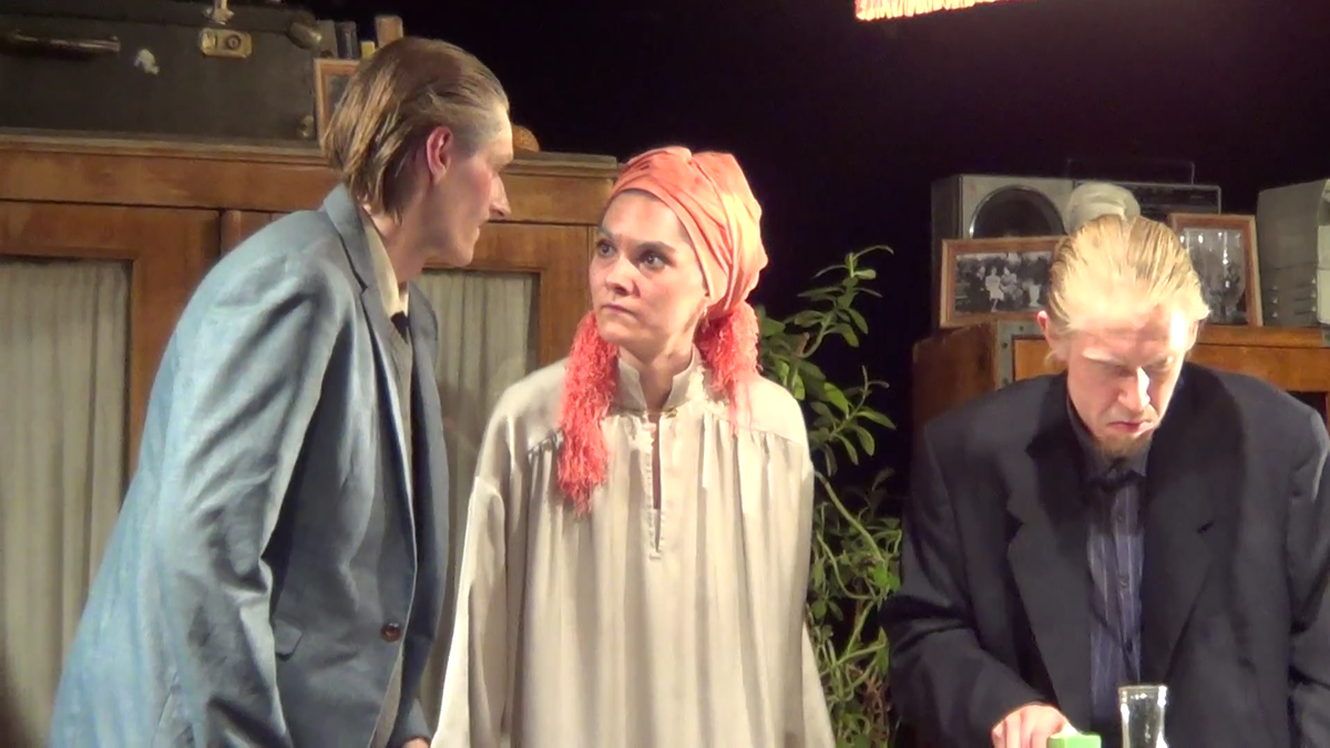 Пьесу ставили разные театральные коллективы, в одной из них играл Фёдор Добронравов. А тут студенты взялись играть стариков! И, знаете, я засмотрелась на 80-летнего ветерана компартии, даже начала приглядываться, пытаясь уловить возрастное несоответствие... и нет, ведь! Константин Новосельцев отлично уловил неторопливые движения старческих рук, головы и шеи, держа согнутой спину. И говорил то самое, что мы слышим от своих старичков, хитрых манипуляторов) Браво, Костя! Александр Самсонов, играя будущего зятя, так же преклонного пенсионного возраста, был более резв по характеру персонажа. Ещё бы — жених всё-таки! Пришёл просить руки 67-летней невесты! Надо дать фору, произвести впечатление. Славная пара второго акта. Я засмотрелась.
