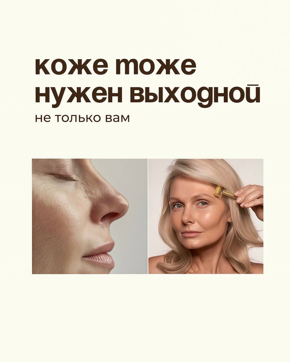 Иногда коже нужен выходной. И не только летом. Вы даете себе перерыв — от задач, от общения, от перегрузки. Но кожа живёт почти без пауз. Каждый день — даже когда вы «ничего особенного не делали» — она сталкивается с: макияжем (пусть и минимальным), SPF, пылью, пудрой, городским воздухом, жёсткой водой, кондиционером, очистителями, руками, которые касаются лица между делом. ⠀ Даже самый безопасный уход и лучший тон — это работа для кожи. Каждое средство — сигнал, с которым ей нужно что-то сделать: впитать, адаптировать, отфильтровать. ⠀ Сначала кожа справляется. Потом привыкает к нагрузке, и сбивается с ритма. ⠀ Через какое-то время это проявляется в: — тусклом цвете лица — раздражениях без видимой причины — снижении эффективности ухода — ощущении, что кожа «перестала слушаться» ⠀ 💡 Решение? Давать коже осознанный отдых. Не «забить», а наоборот — убрать всё лишнее и оставить самое нужное: без декоративки, без лишних слоёв. только мягкое очищение, увлажнение и восстановление ⠀ Что п